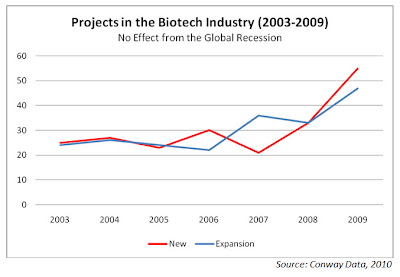 While many sectors of the American economy were struggling in 2009, the biotech industry surprisingly beat many of the trends. Though many large biotech firms participated in layoffs and downsizing, smaller biotech firms continued expansion and gave the overall industry a boost.